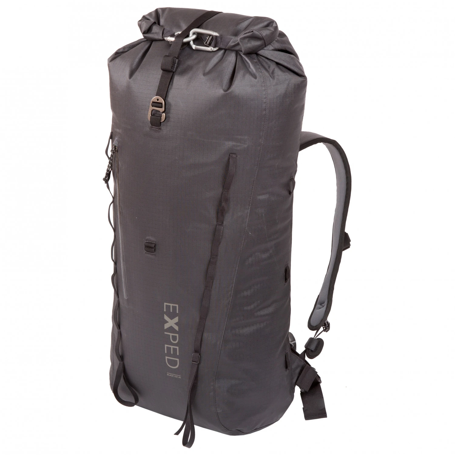 Le Black Ice répartit très bien la charge grâce à sa forme mince et compacte. Il est équipé d’un compartiment principal spacieux dans lequel tous les équipements importants trouvent une place, comme par exemple les chaussons d’escalade, le baudrier, la cordes à double / corde jumelée, les coinceurs et le système d’assurage. Mais il y a aussi de la place pour les autres choses comme les boissons et les barres énergétiques. La daisy chain est idéale pour accrocher son équipement de montagne. Il y a aussi une poche frontale zippée, idéale pour les cartes et autres petits objets. Exped recommande une charge utile maximale de 15 kilogrammes. Le Black Ice est tout simplement le compagnon idéal lorsqu’il s’agit de la verticale !